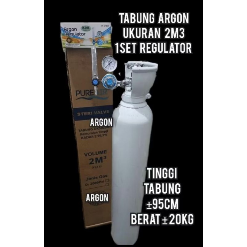 TABUNG ARGON 2M3 + REGULATOR + ISI SIAP PAKAI UNTUK LAS TIG