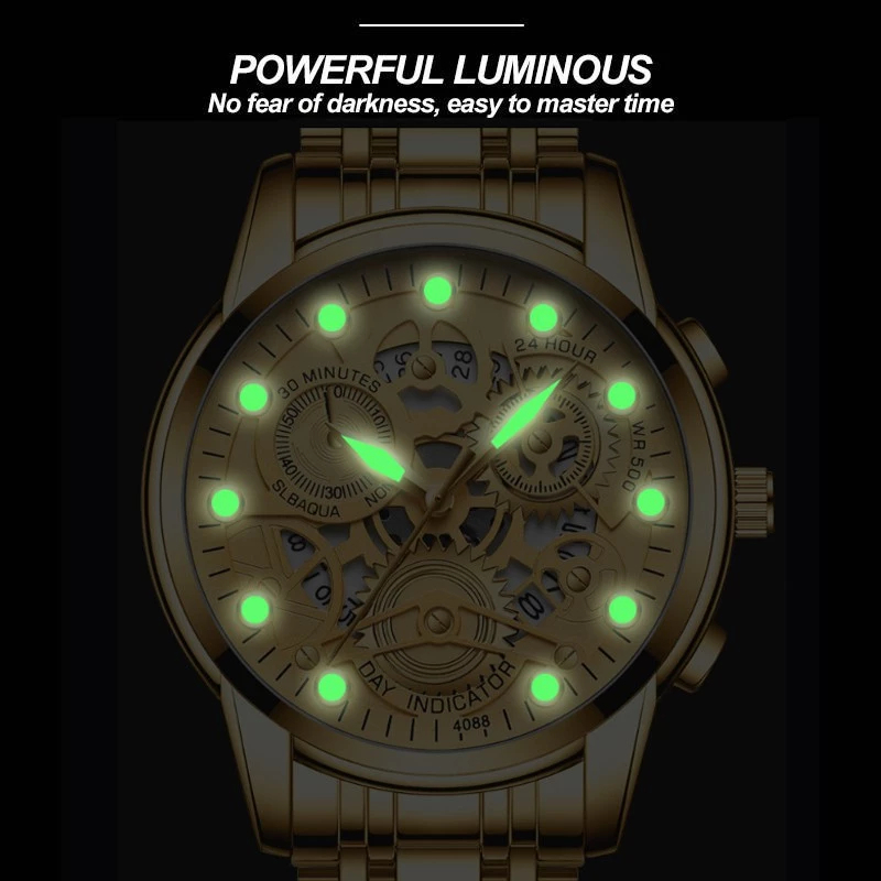Aokeyo 4088 Jam Tangan Pria Anti Air Original Luxury Stainless Steel(Free BOX+Kartu)