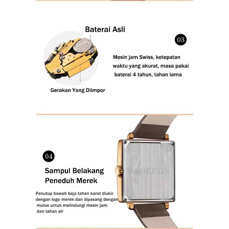 AOKEYO F61 Jam Tangan Wanita Retro Santai Square Dial Tali Kulit Anti Air Analog Kuarsa Jam Tangan Cewek(Free BOX+Kartu)