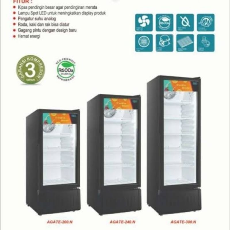TERMURAH RSA AGATE-200 AGATE-240 AGATE-300 SHOWCASE Kulkas kaca LEMARI PAJANGAN BOTOL