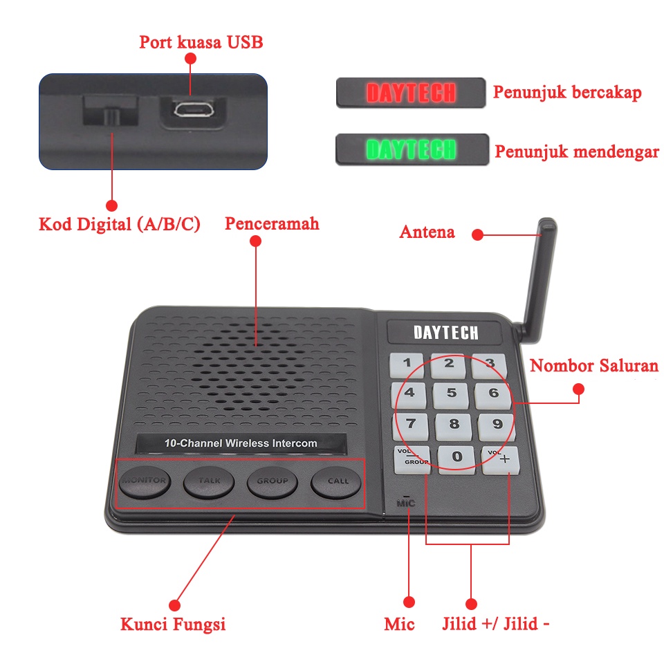 Daytech Wireless Intercom 27CH Interphone Home/Office Interkom Nirkabel Walkie Talkie Wln CI02