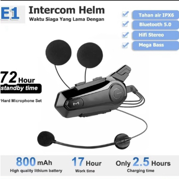 Intercom E1 helm Bluetooth 5.0 FM Radio intercom dua arah dan Peringkat tahan air IPX6 Waterproof