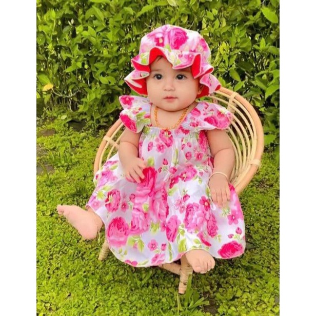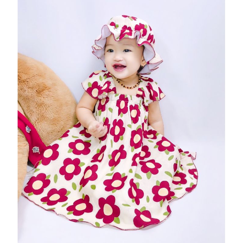 Dress Bayi Bahan Katun Free Topi / Dress Bayi Murah