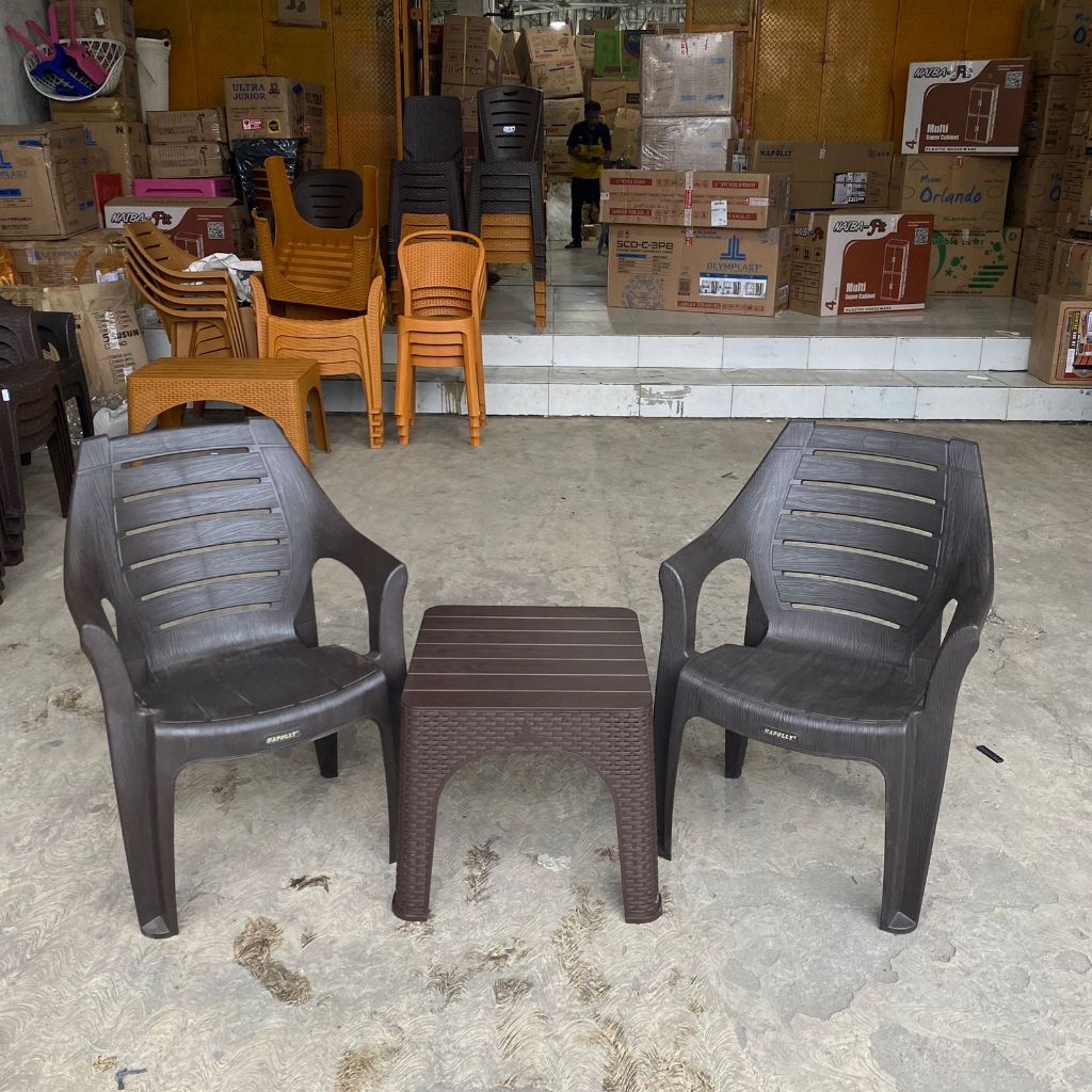 Kursi Teras 1 Set 2 Kursi Teras Santai Anyaman Plastik Olymplast Ol 508 + Meja Oct-R Olymplast Meja Ost-R Olymplast