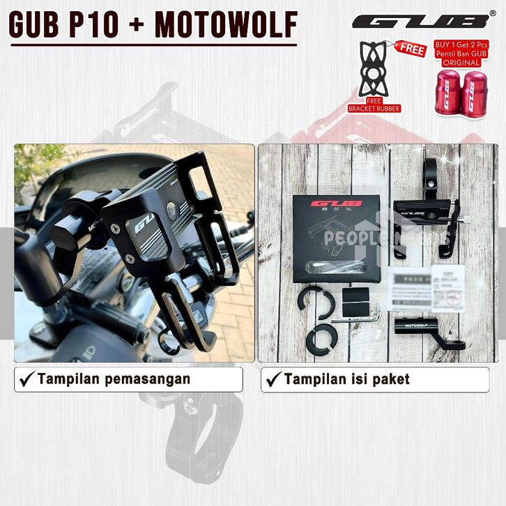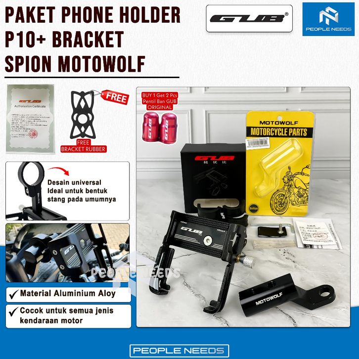 Holder Motor Paket GUB P10 Phone Holder + Bracket Spion MOTOWOLF ORIGINAL