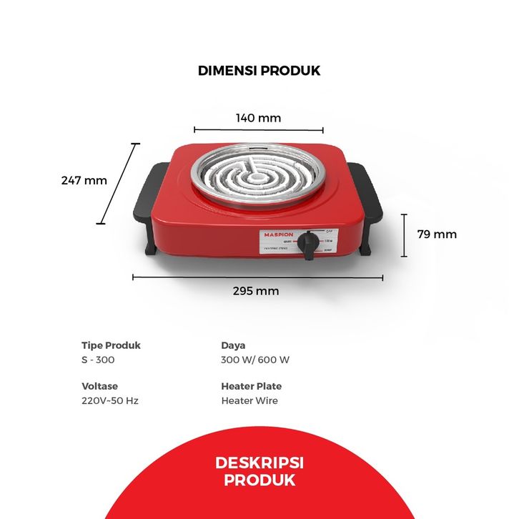 MURAH Maspion Kompor Listrik Mini 1 Tungku - S300 uhikb