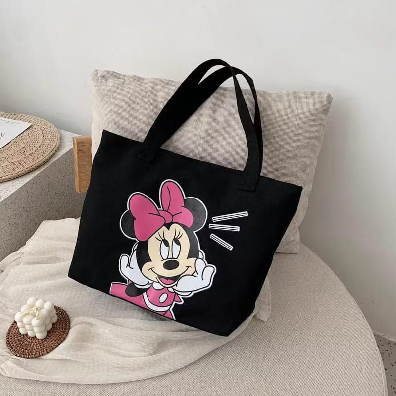 MOTTYCHUA BAG - TOTEBAG FULLPRINT CARAKTER MICKEY & DONAL PAKAI RESLETING / ZIPPER KANVAS DINIR300