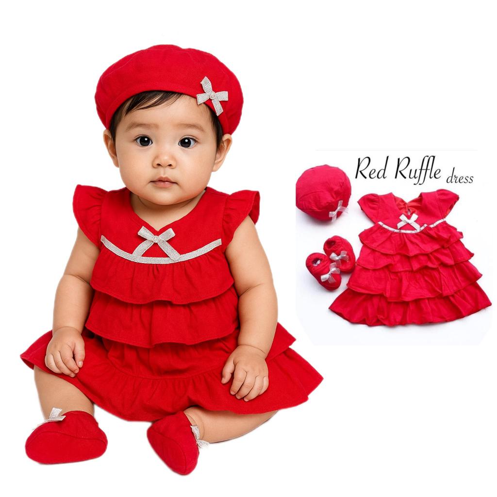 anak dress bayi topi bayi dress cantik cewe lucu babeebabyshop RED RUFFLE DRESS / FLAMINGO RED KAUREEN WEI WEI meihua