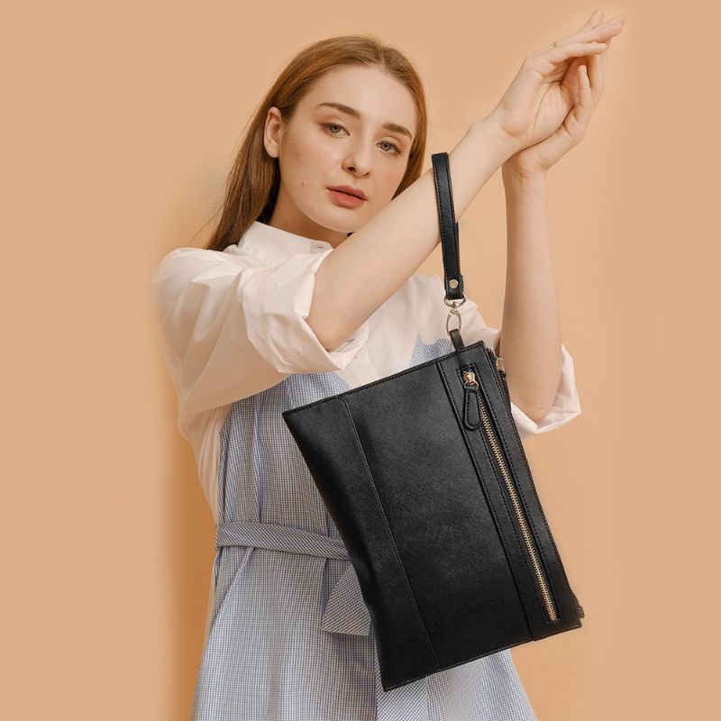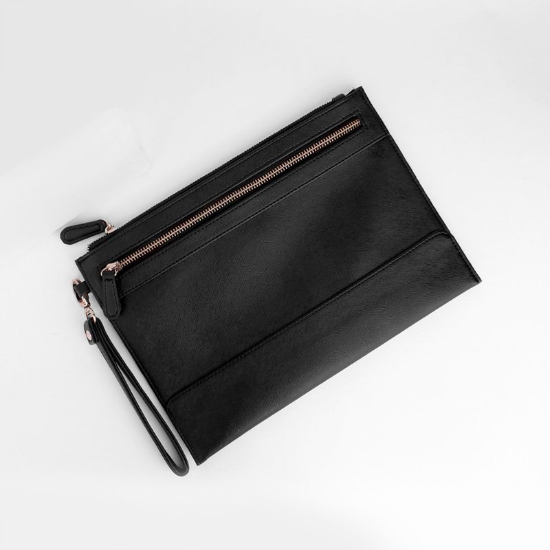CLUTCH WANITA MULTIFUNGSI DOBEL ZIPPER HITAM WATERPROOF ANTI AIR POUCH HANDBAG SERBAGUNA IMPORT TERBARU