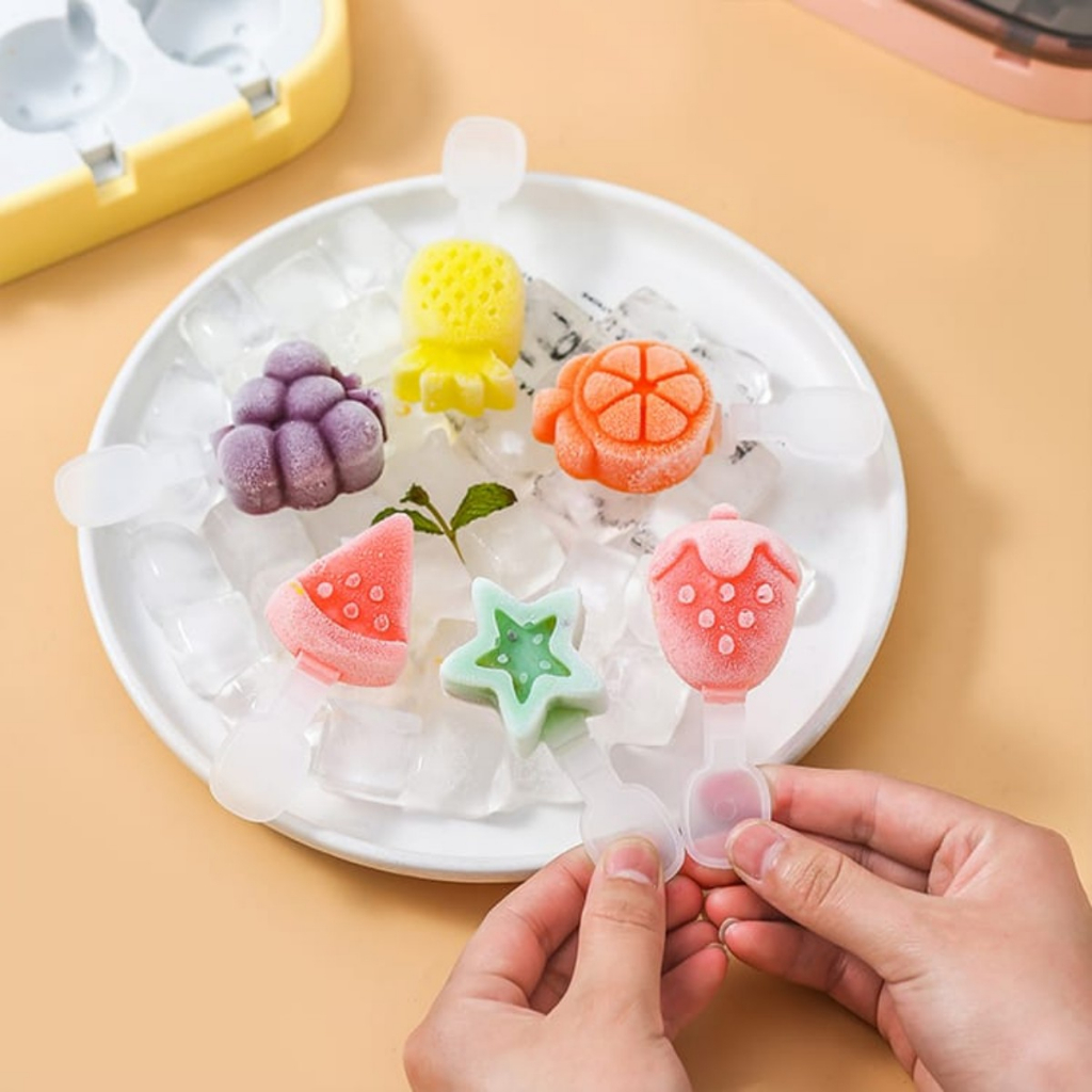 Cetakan Es Krim 6 Slot Bentuk Fruit Dan Animal/Cetakan Ice Cream Lucu/Ice Cream Mould Fruit & Animal