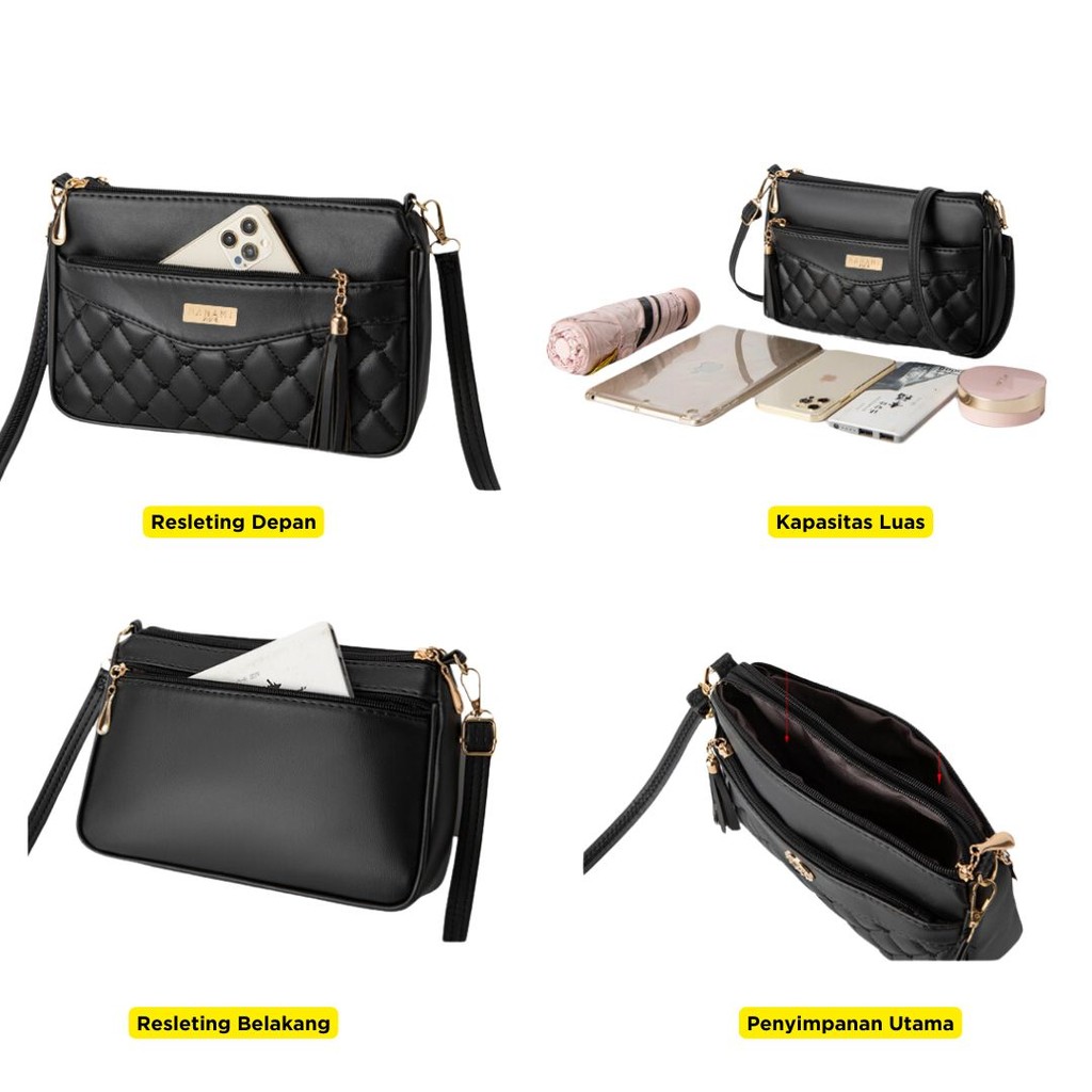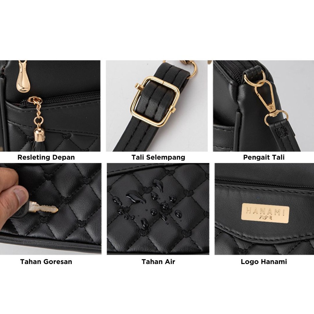 HANAMI TAS SELEMPANG WANITA PREMIUM KULIT HITAM KOREA LIVIXE SLING BAG SIMPLE REMAJA KEKINIAN MURAH