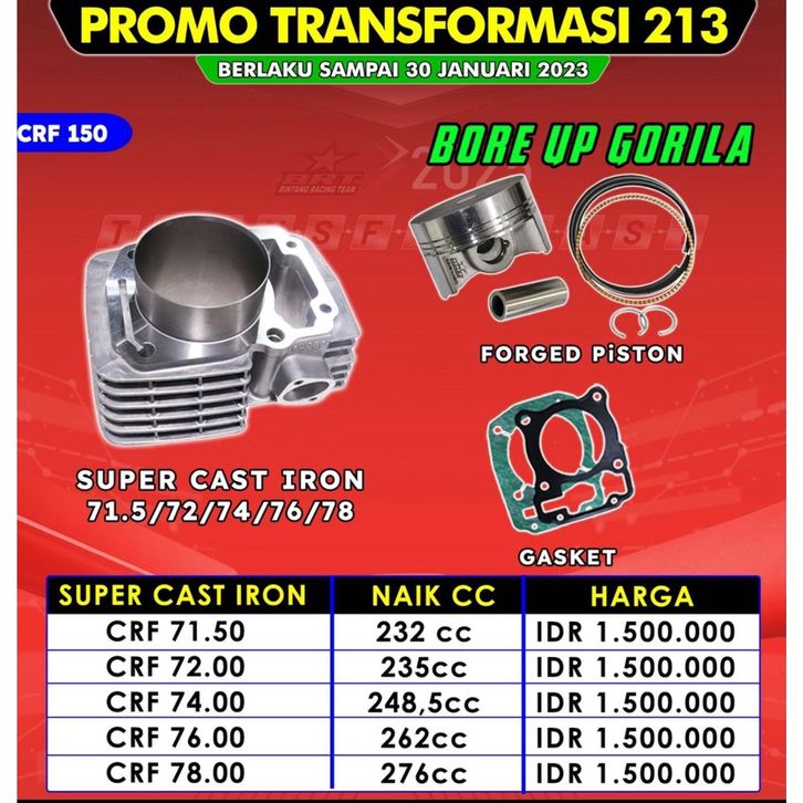BLOK BRT BOREUP CRF 150 VERZA MEGAPRO MONO 71.5 72 74 76 78 MM CAST IRON