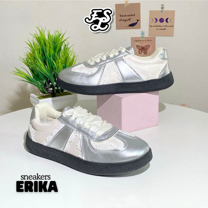 Sepatu Sneakers Wanita/Erika Sepatu Casual Sepatu Outdoor Fashion Pink Beige Silver