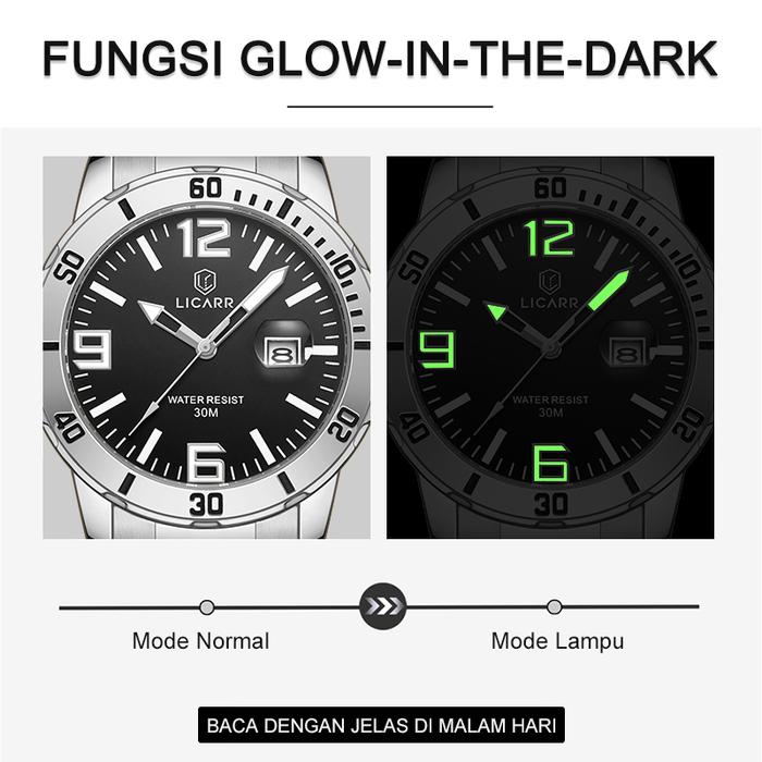 LICARR Jam Tangan Pria Fashion Kuarsa Stainless Steel Business Anti Air Santai Tanggal Jam Tangan