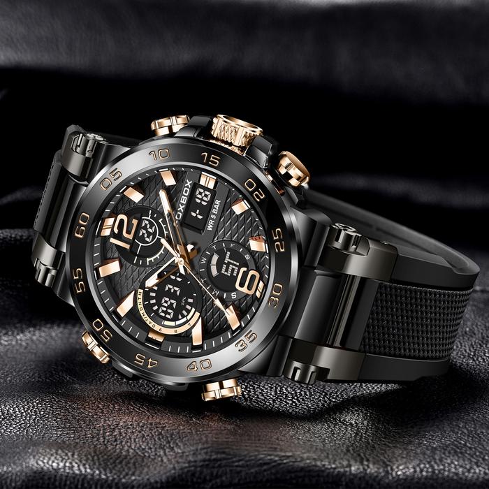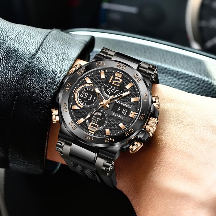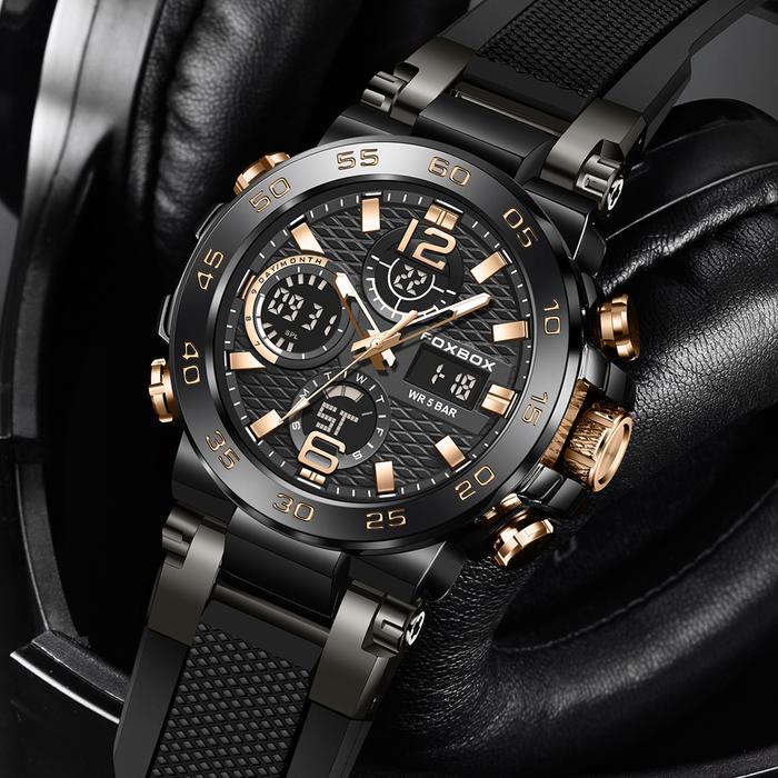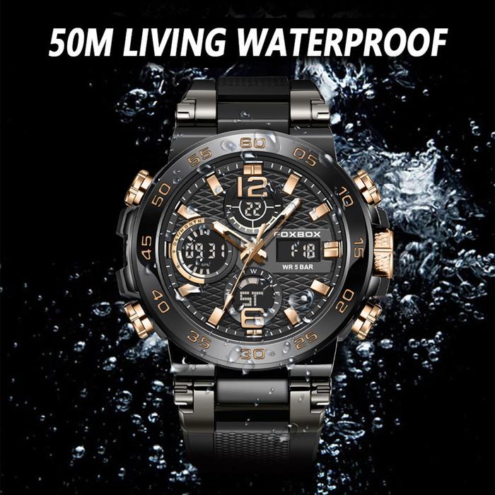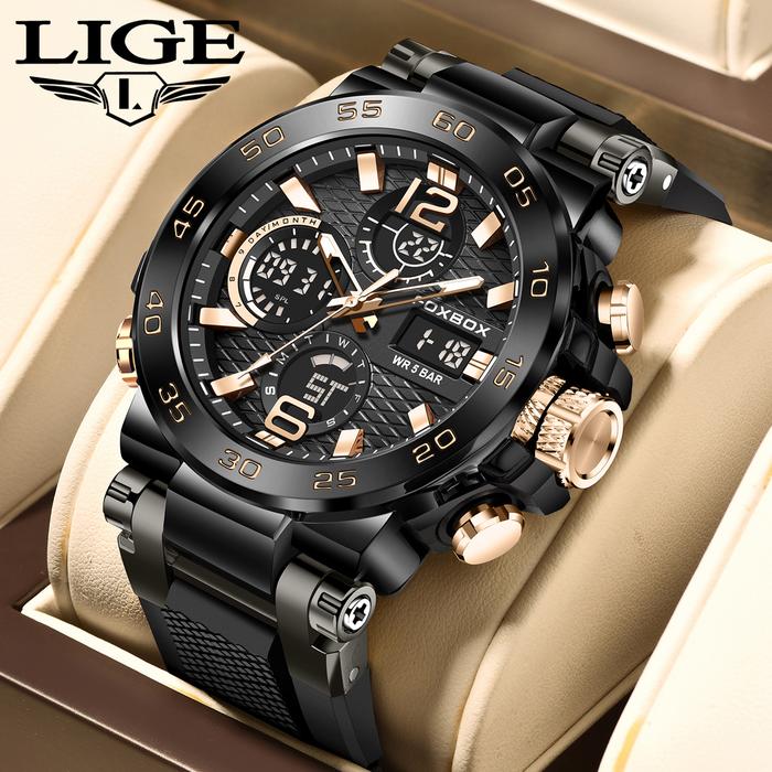 LIGE x FOXBOX jam tangan pria digital modis baru dengan layar ganda jam tangan kuarsa olahraga tahan