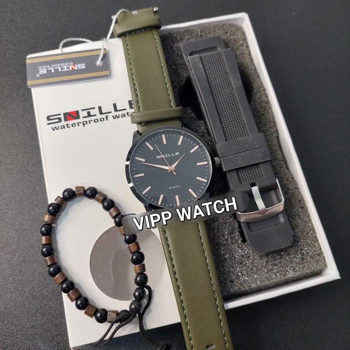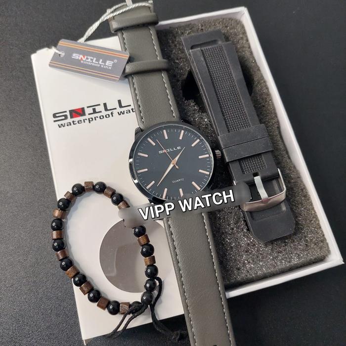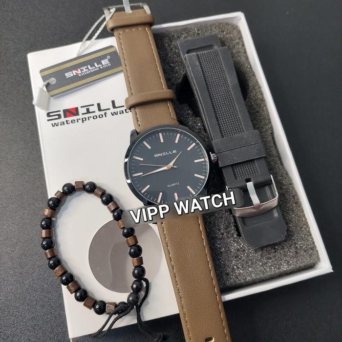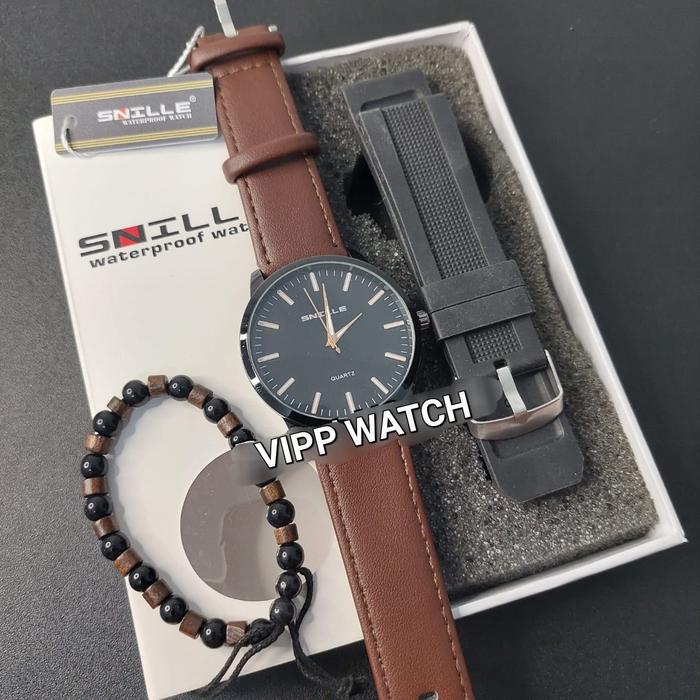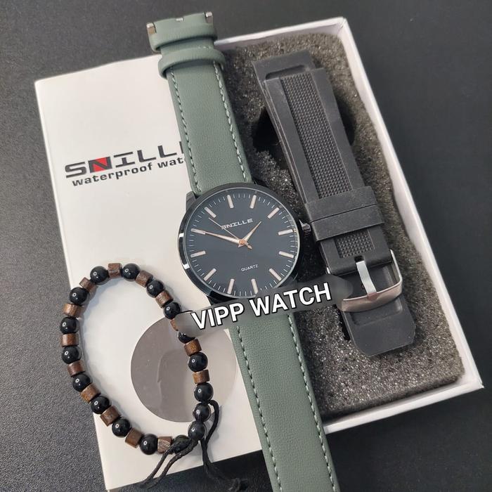 SNILLE N1016 Jam Tangan Pria Original Paket Full Sett Anti Air Waterproof Kulit Rubber Watches