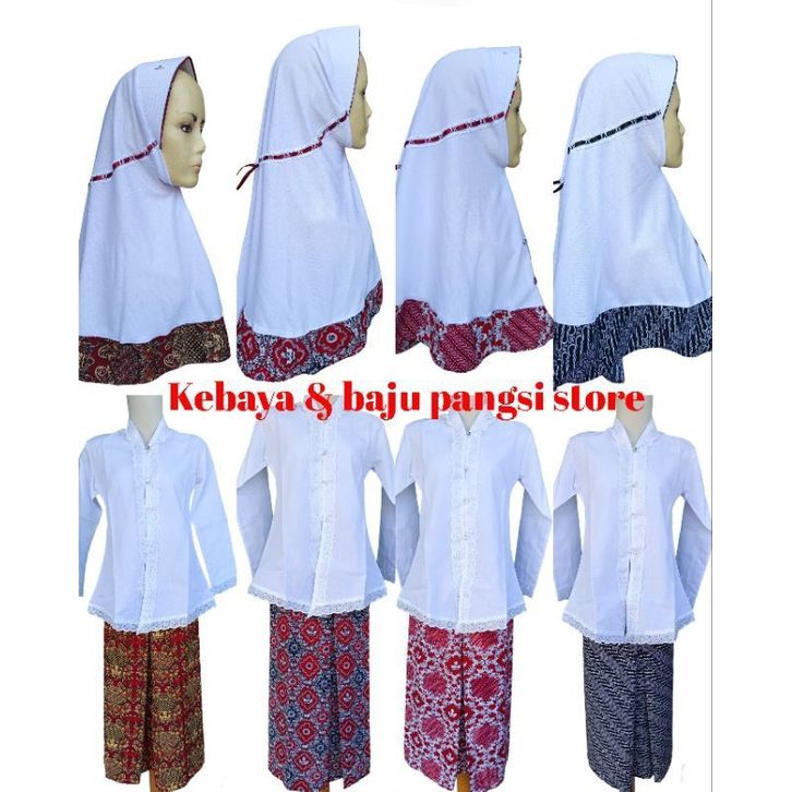 stelan baju kebaya plus hijab seragam baju kebaya anak sekolah TK & SD lengkap kerudung