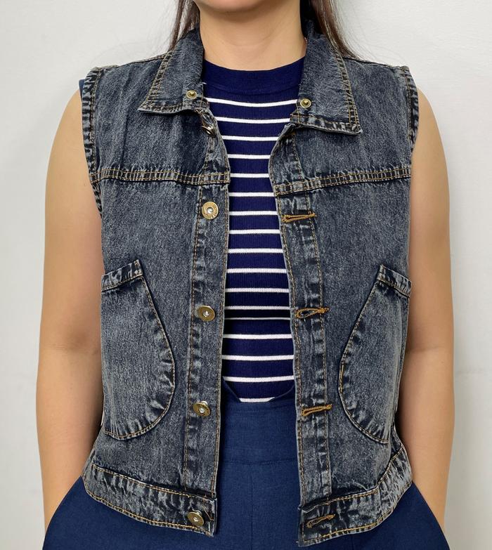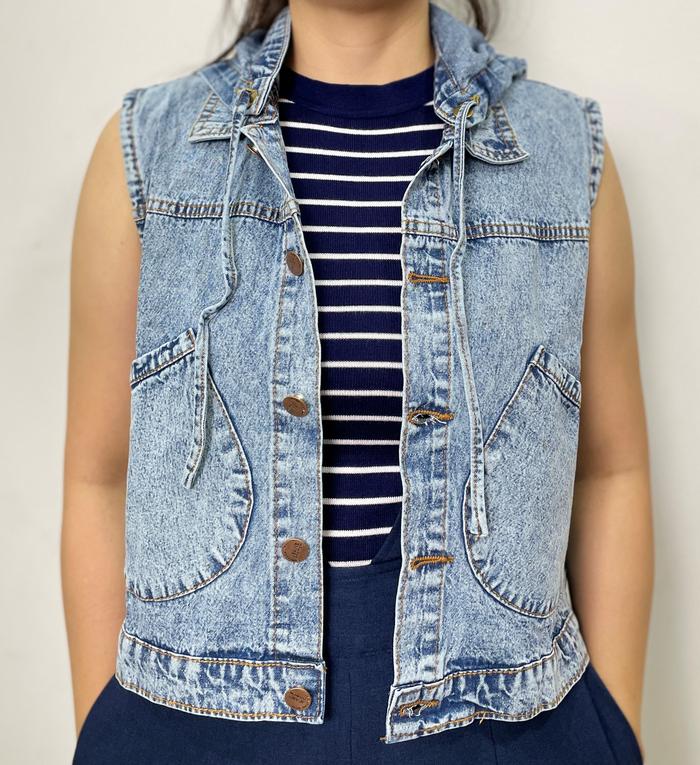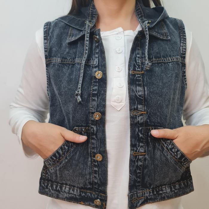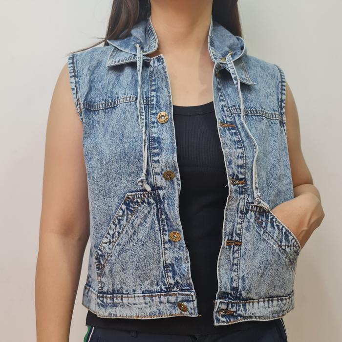 Minola atasan Rompi Jeans Daily Hoodie Singlet Wanita Tidak Panjang