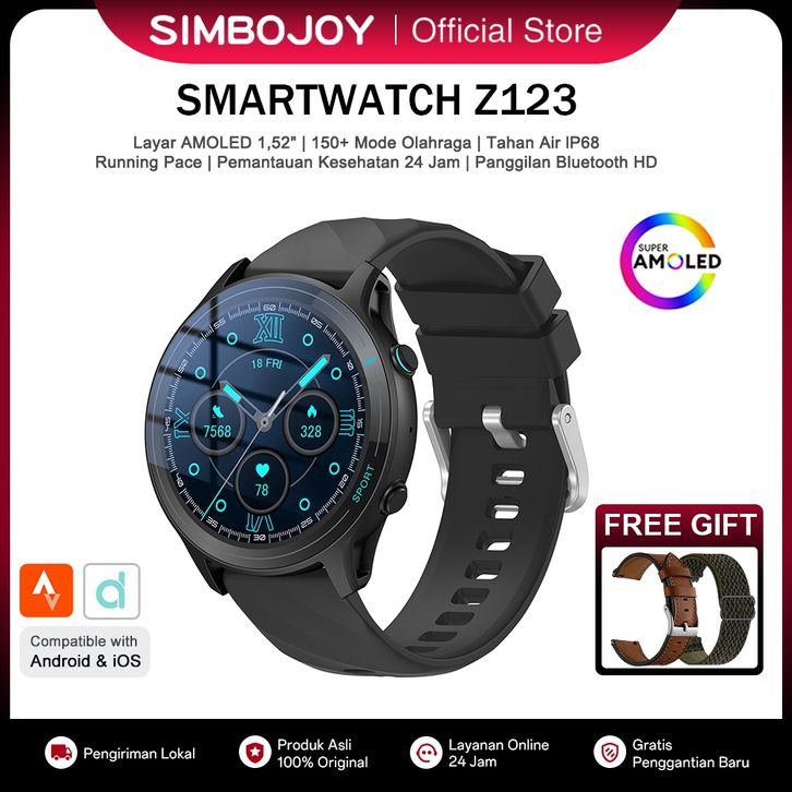Jam tangan smartwatch original Simbojoy SmartWatch Jam Tangan Pria Running Pace AMOLED Screen AOD Metal Case Custom Wall