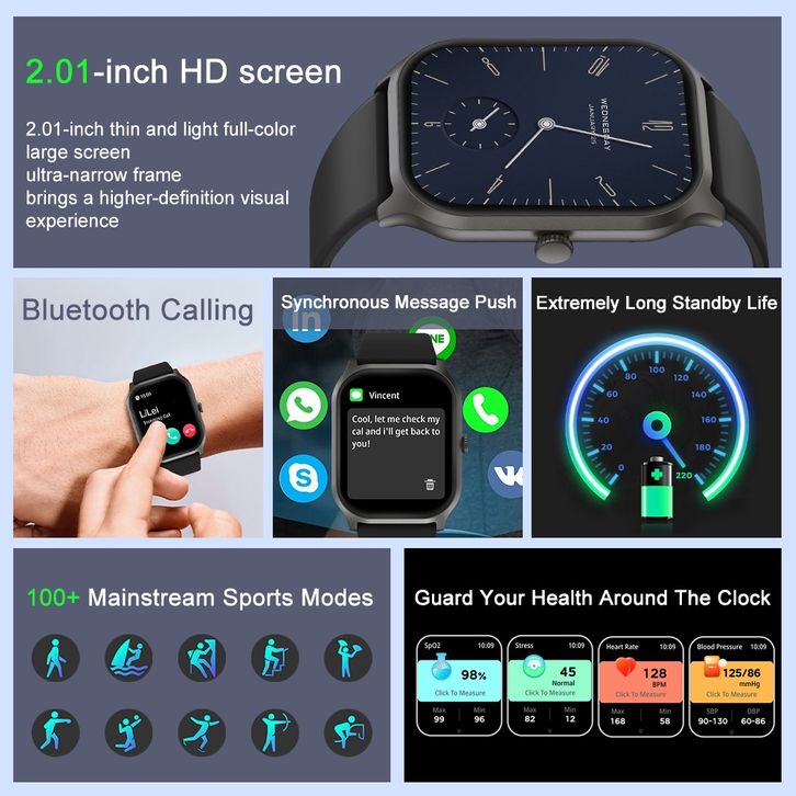 Jam tangan smartwatch original Simbojoy Smartwatch 2.01-inch Curved IPS Screen Bluetooth Call Running Pace Custom Wallp