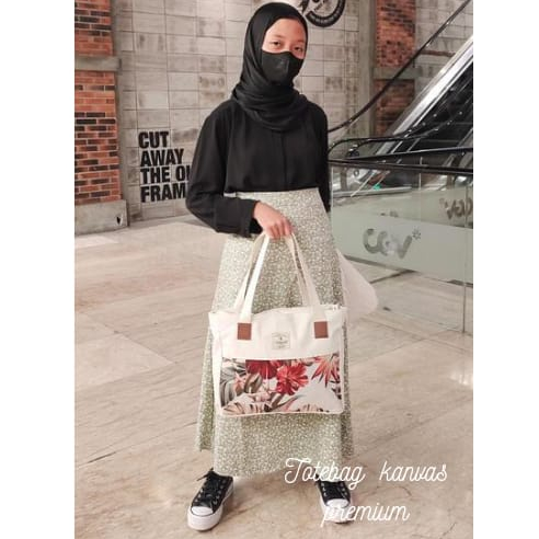 TOTEBAG WANITA RESLETING / TAS TOTE BAG KANVAS SHOPPING/KULIAH/SEMINAR LANDSCAPE BISA CUSTOM SABLON