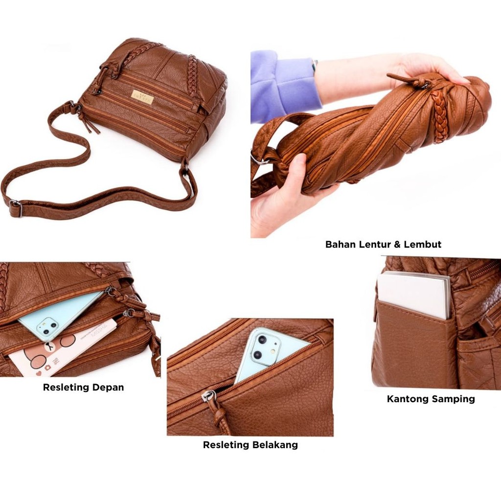 HANAMI TAS SELEMPANG WANITA KULIT PREMIUM SHOULDER SLING BAG KOREA CEWEK COKLAT HILLMONT TA383B7