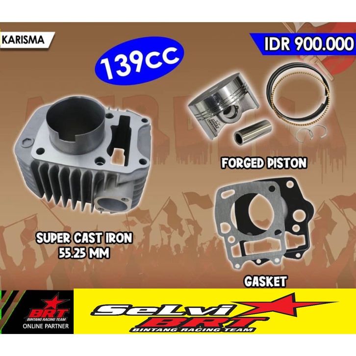 BLOK BOREUP CAST IRON FORGED PISTON BRT KARISMA SUPRA X 125 KPH 55.25 140CC