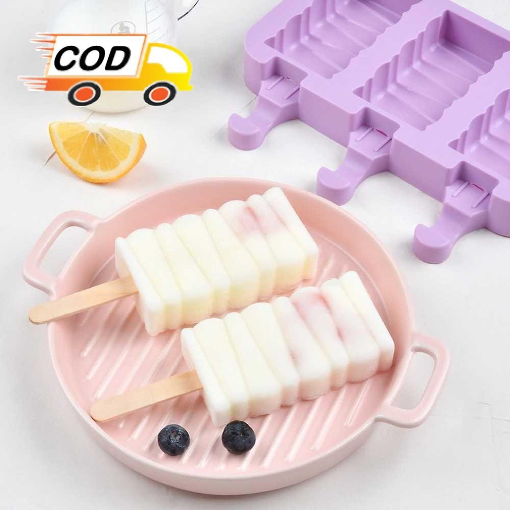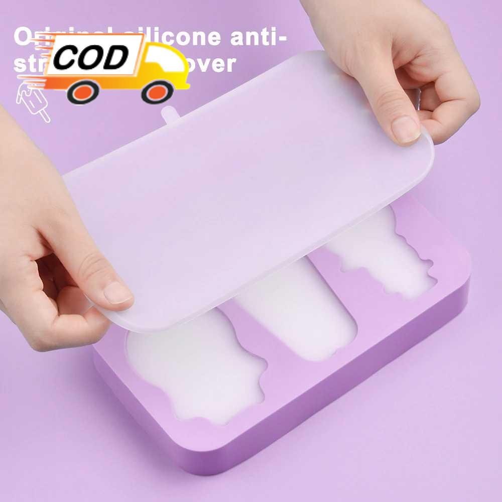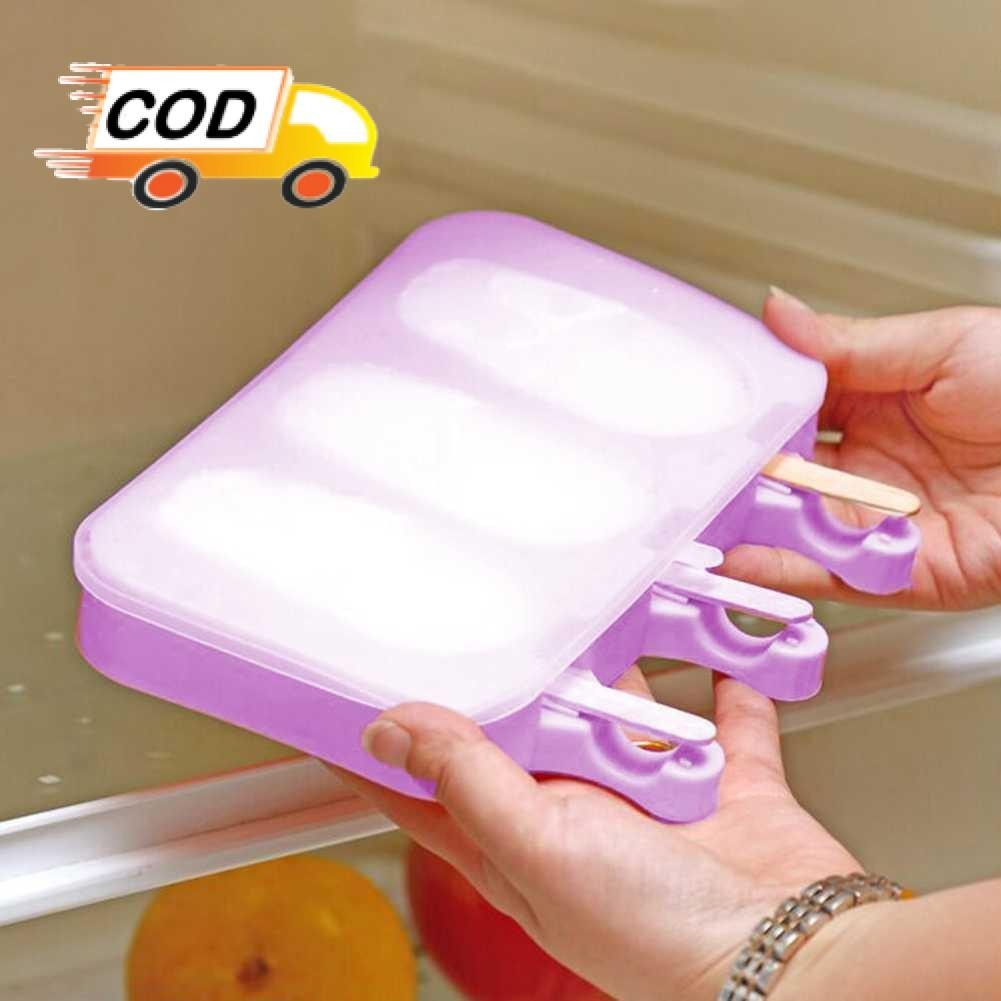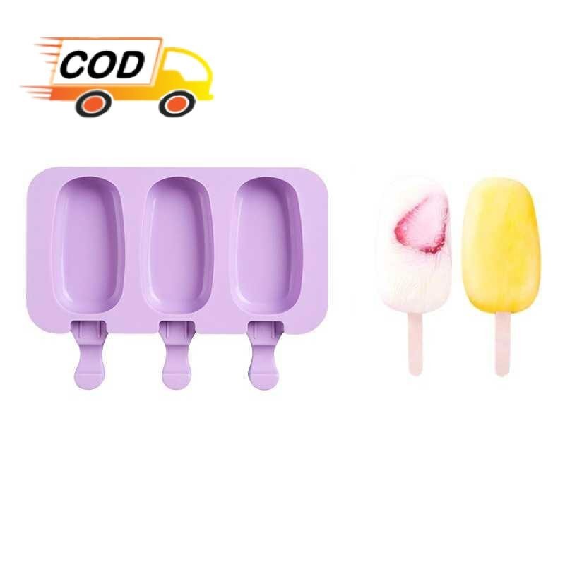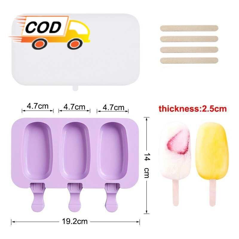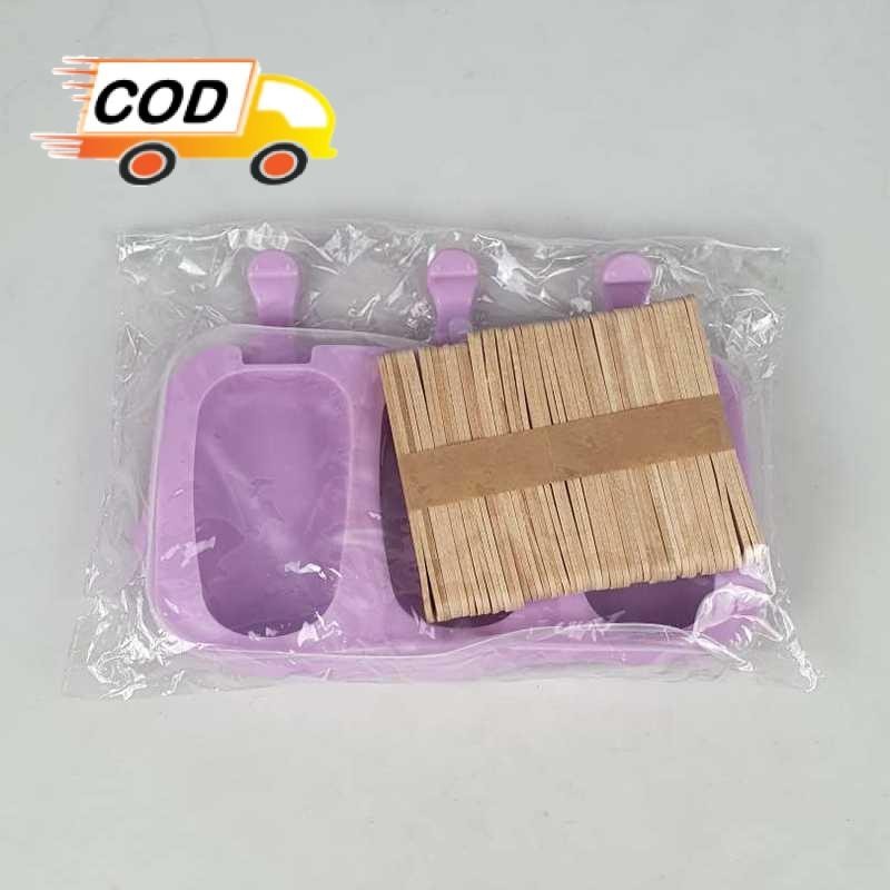 Cetakan Es Krim Silikon 3 Lubang dengan 50 Stik Food Grade