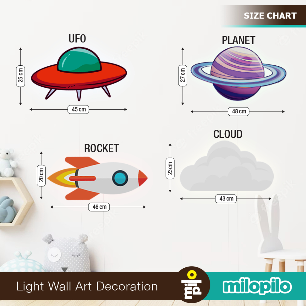 Lampu Tidur Anak roket, awan, ufo, planet, astronot, Dekorasi Kamar, Kado Anak Cowok Milopilo
