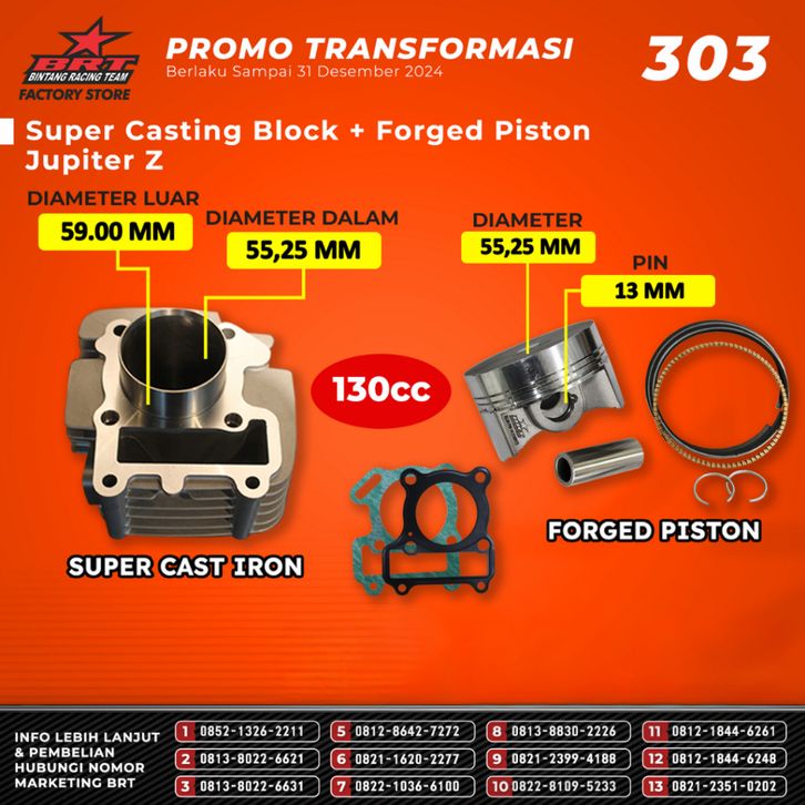 BLOK CAST IRON FORGED PISTON BRT JUPITER Z 5TP VEGA R 55.25 MM 130CC BOREUP