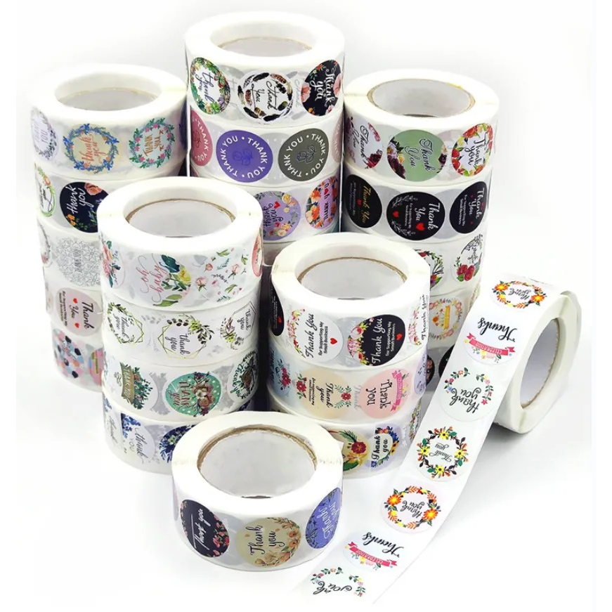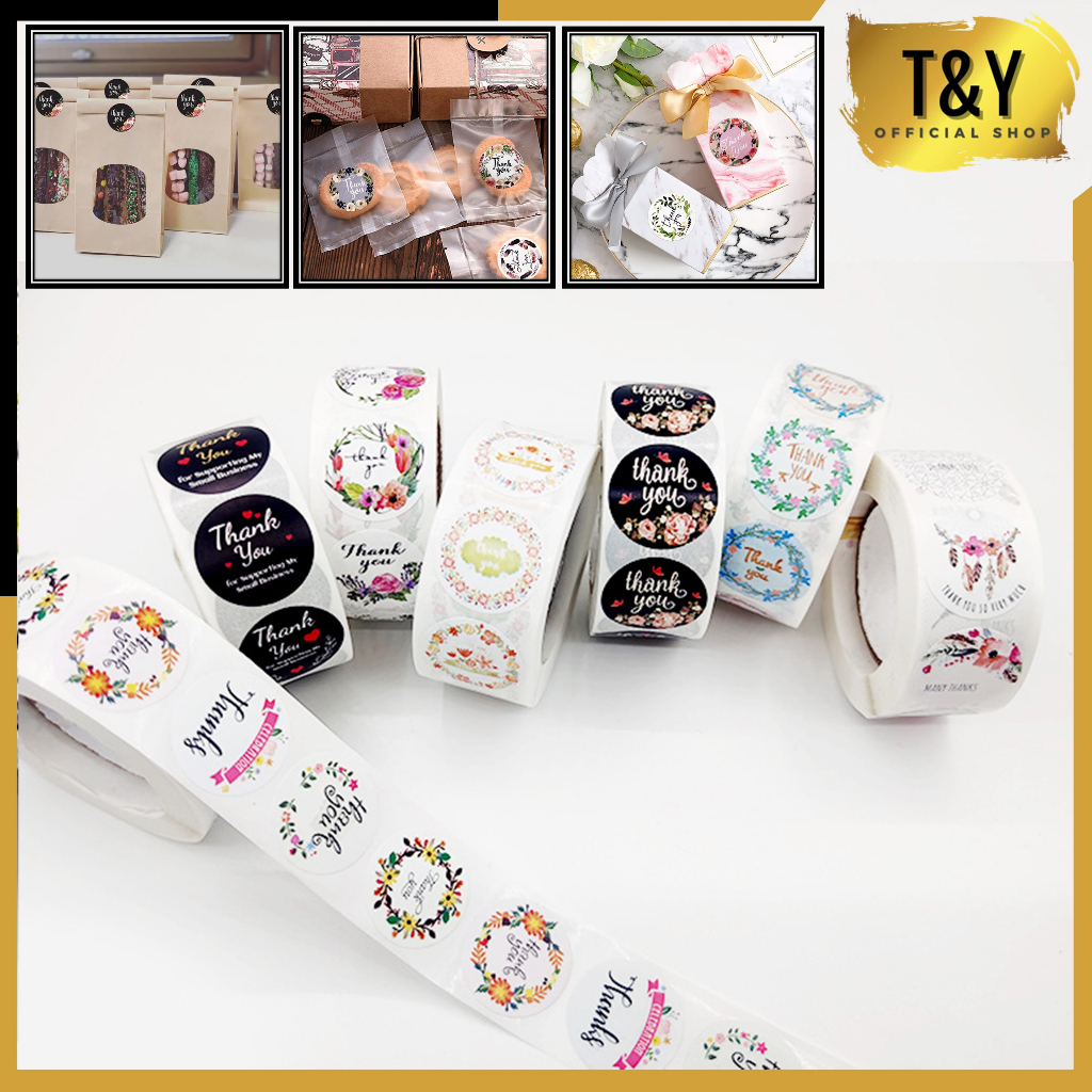 T&Y Sticker Thank You Roll Isi 500 Pcs Stiker Terima Kasih Karakter Batik Love Warna Self Adhesive Seal Label Roll Stick