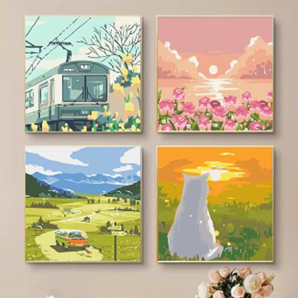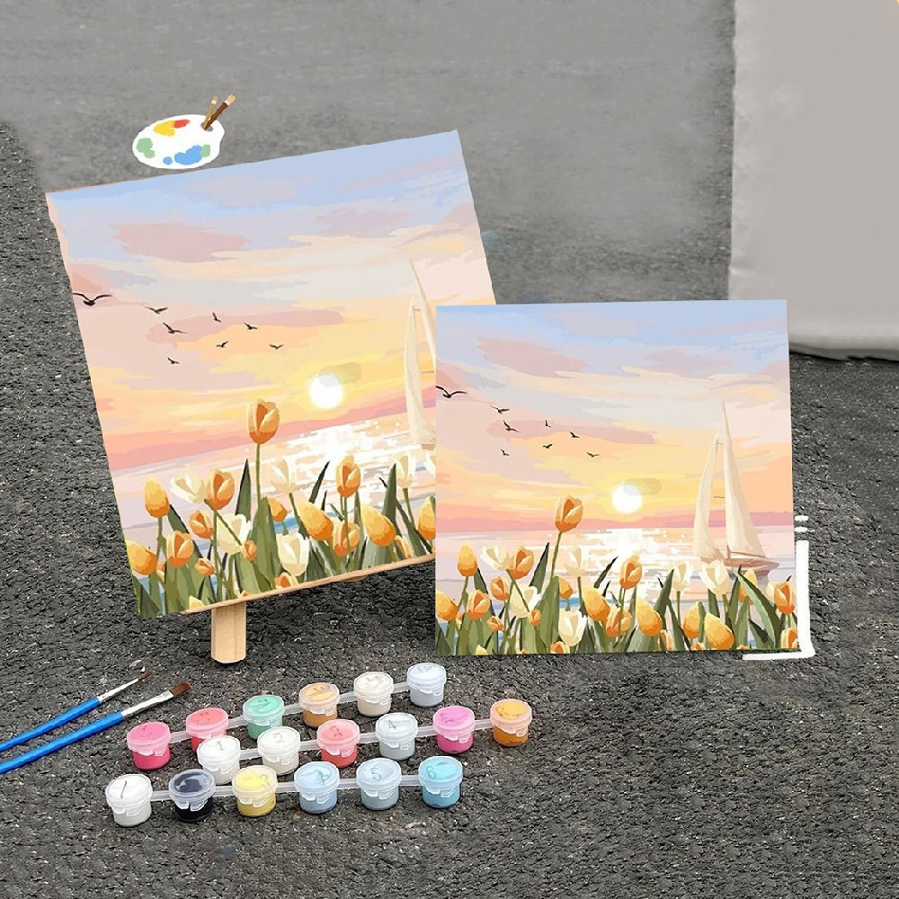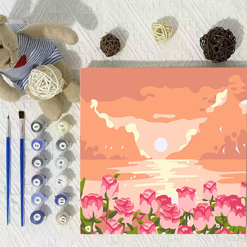 KANVAS SIAP LUKIS PAINTING BY NUMBER KIT 20X20CM / DIY CANVAS DIGITAL PAINTING ACRYLIC AESTHETIC LUKISAN BUNGA PEMANDANGAN KREASI STATIONERY A110