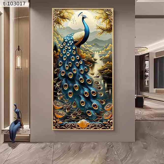 Lukisan Porselin 5D Painting Porcelain - Merak Peacock - Hiasan Dinding Mewah Crystal Diamond