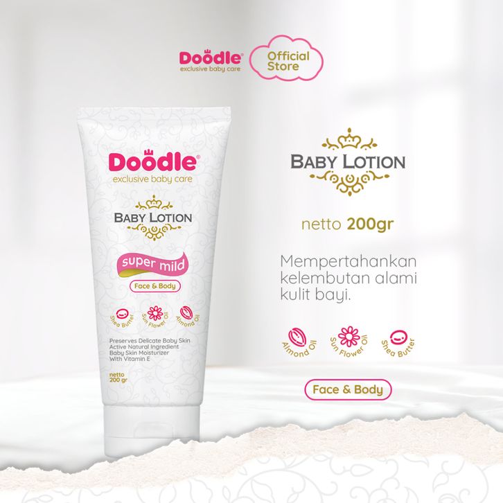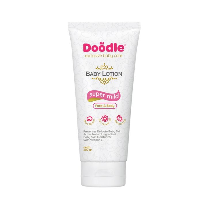 BODY LOTION BAYI DOODLE FACE SUPER MILD LIQUID UNTUK WAJAH DAN BADAN HANDBODY HENBODY UKURAN 200 GR PROMO MURAH