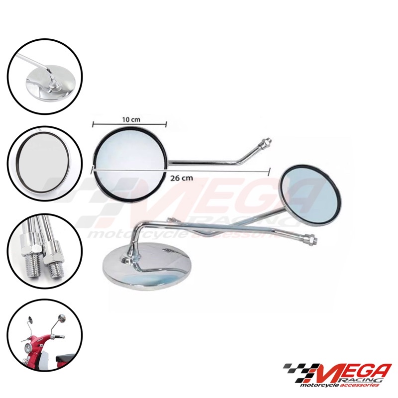 Ka Spion Tipe Vespa Model Reto Classic Bulat Full Crom Drat Yamaha Honda Model c50 c70 c90 Chrome Cb Japstyle Tangkai Ti