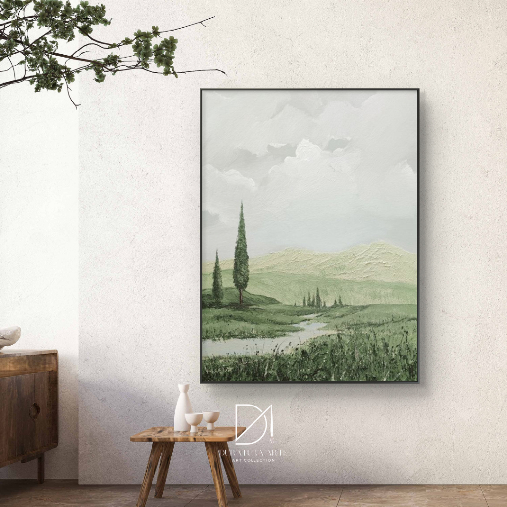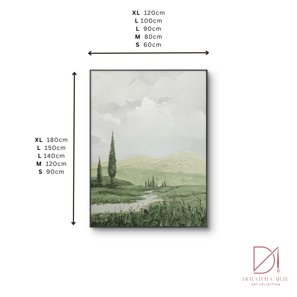 Duratura - Lukisan Pemandangan Hijau Pohon Cemara Cantik Minimalis Aesthetic - Lukisan Portait- Lukisan Tangan Asli
