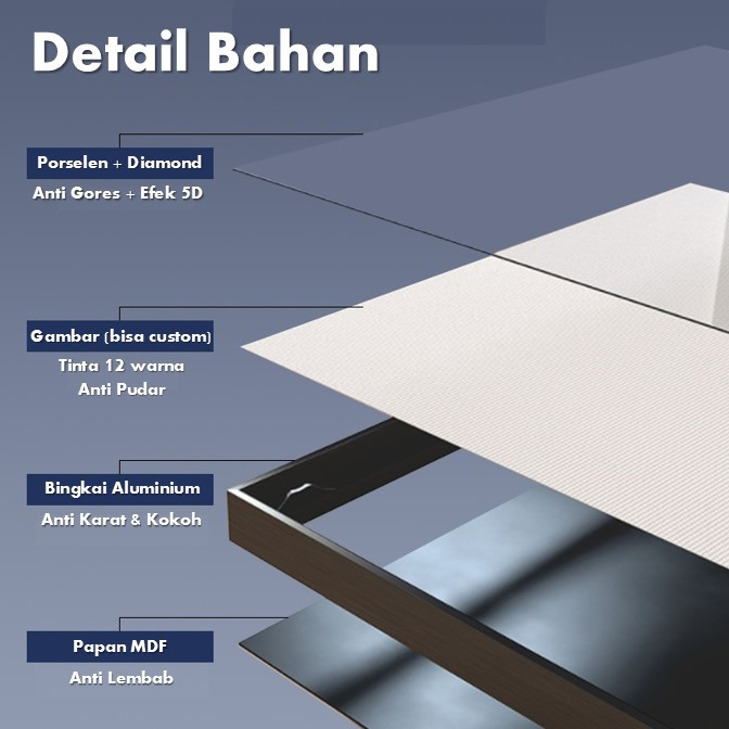 Lukisan Porcelain 5D Detail Diamond - el Artistik Rusa Ornamen - Bingkai Alumnium Mewah Elegan