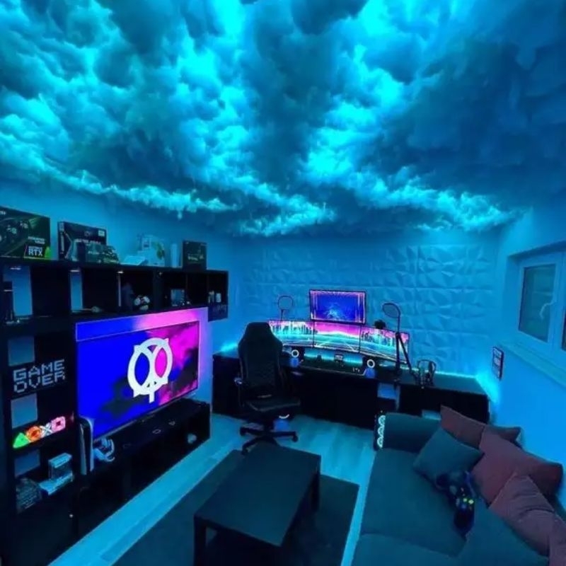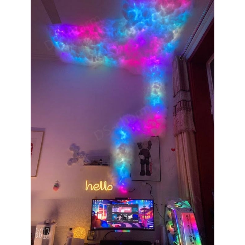 Lampu awan dakron efek petir running tempel tembok full set led tinggal pasang tempel dinding sensor suara dan remote