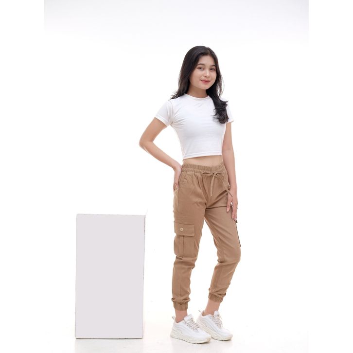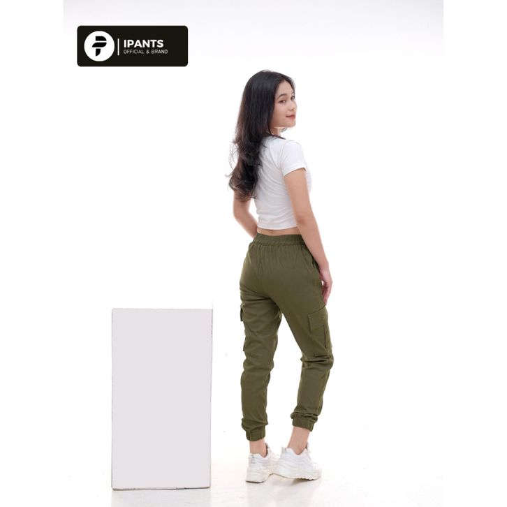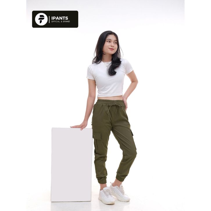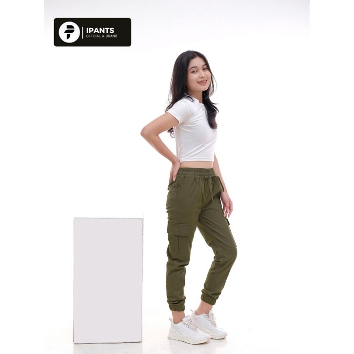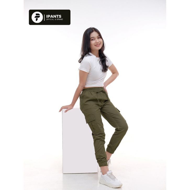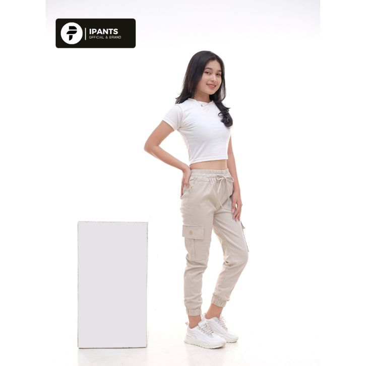 IPANTS Jessie Cargo Pants Wanita Highwaist Jumbo Celana Jogger Sweetpants Kargo Panjang Korean Style Bahan Katun