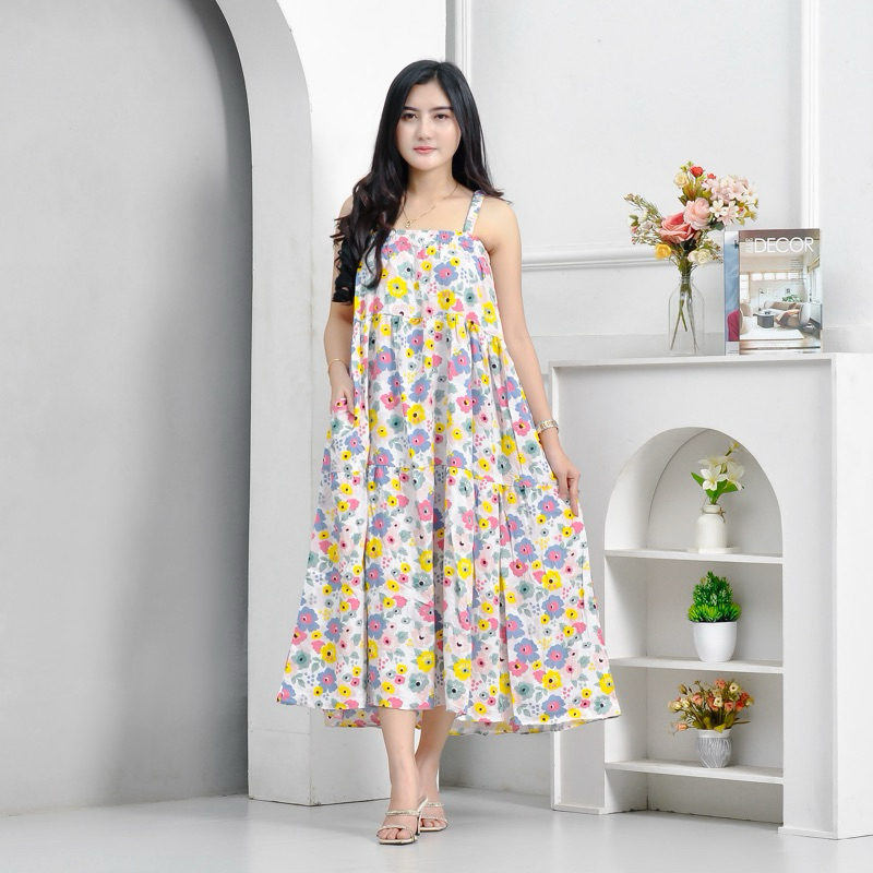 Lavanya Dress Tanpa Lengan Bumil Busui Dress Pantai Motif Bunga Rayon Viscose