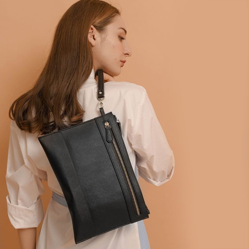 CLUTCH WANITA MULTIFUNGSI DOBEL ZIPPER HITAM WATERPROOF ANTI AIR POUCH HANDBAG SERBAGUNA IMPORT TERBARU