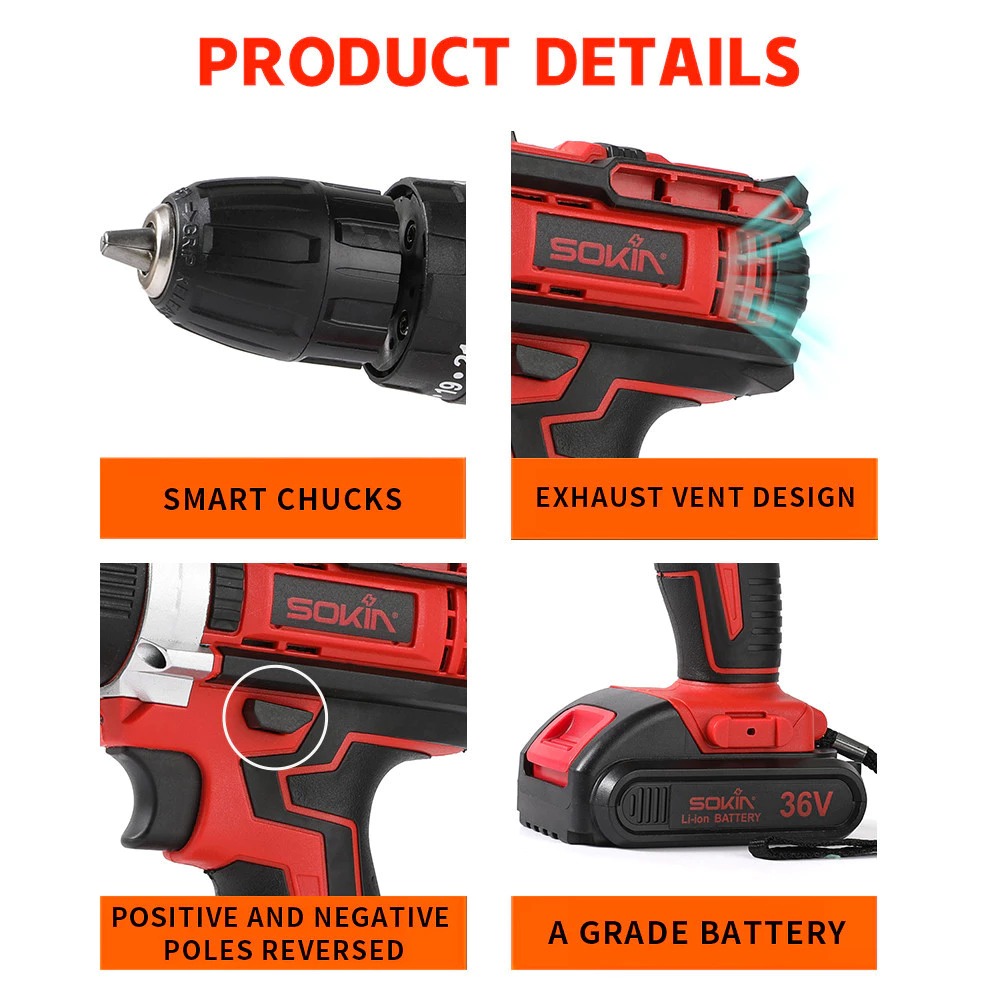 Sonkin / Bor Listrik36V Mesin Bor Cordless drill Mesin impact bor 35N.m 10mm Bor Tanpa kabel 36V Set Lengkap Untuk dindi