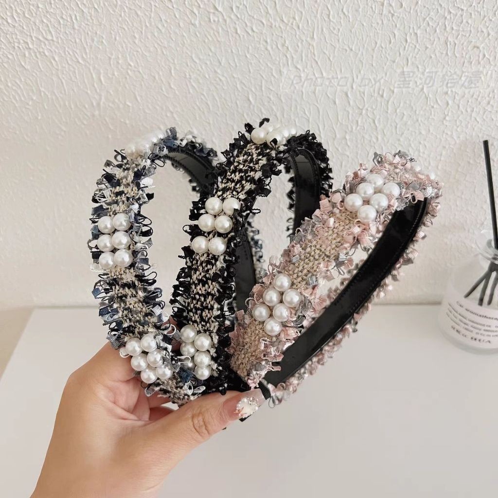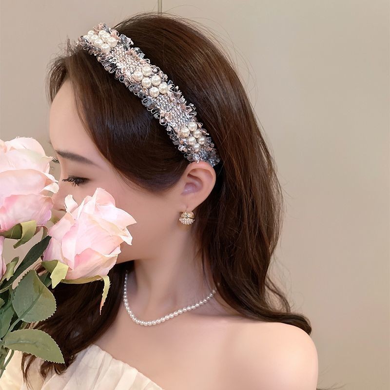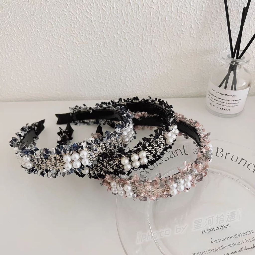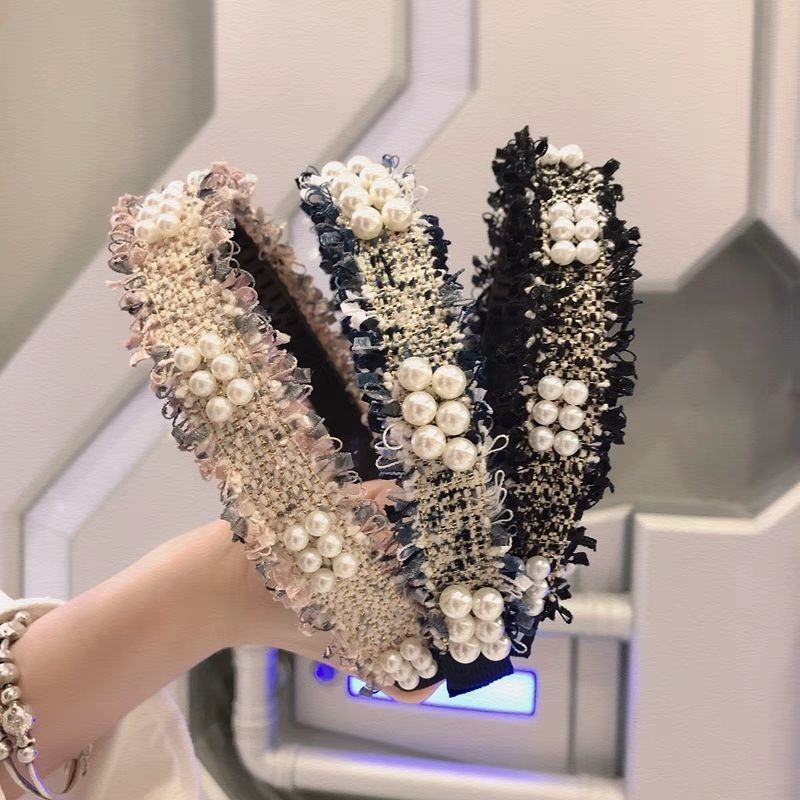 Bando Renda Korea Import Padded Headband Mutiara & Rumbai Bando Ikat Rambut Elegan untuk Keseharian dan Acara Spesial