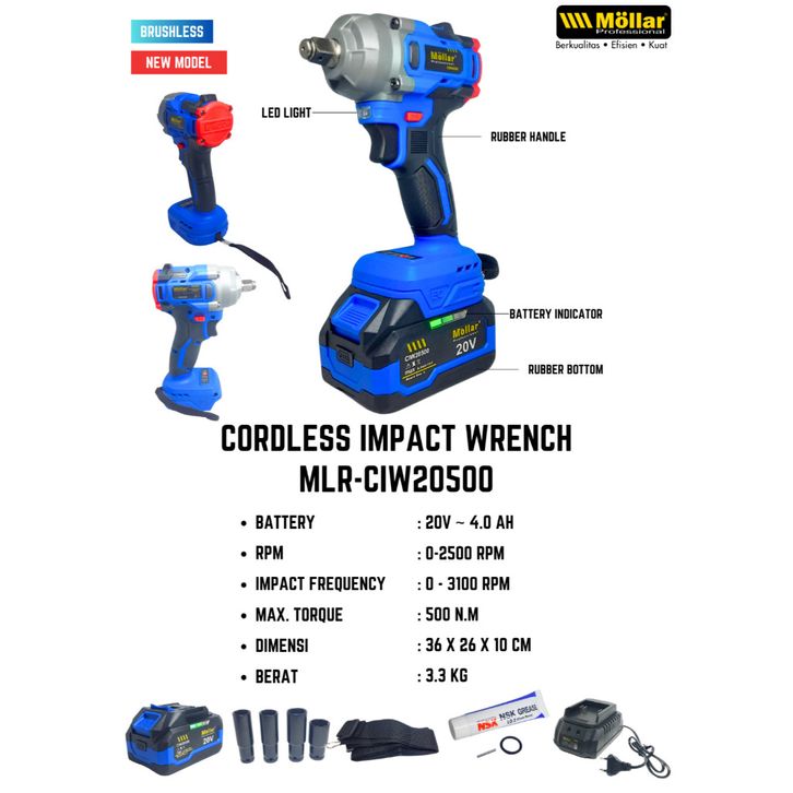 MOLLAR CIW20500 20Volt Cordless Impact Wrench HD - Alat buka baut