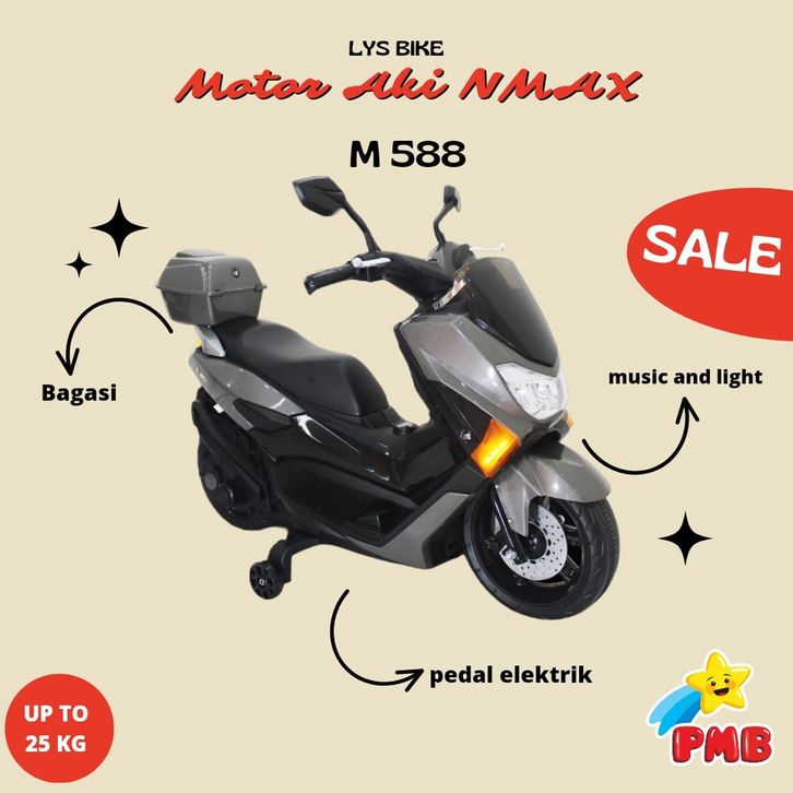 PROMO Motor Aki PMB NMAX Matic M 588 / Mainan Motor Motoran Anak Cas Charger Musik dan Lampu / Motor