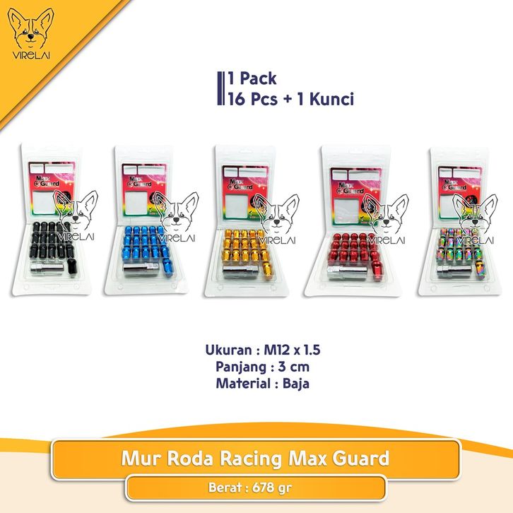 PROMO Mur roda racing MAX GUARD warna ukuran 12 x 1.5 /1.25 Merah Kuning Hitam Biru Pelangi 16 + 1