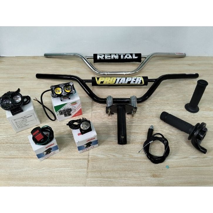 PROMO paketan stang trail+adaptor stang+gas spontan daytona polos+lampu tembak LED Gratis saklar