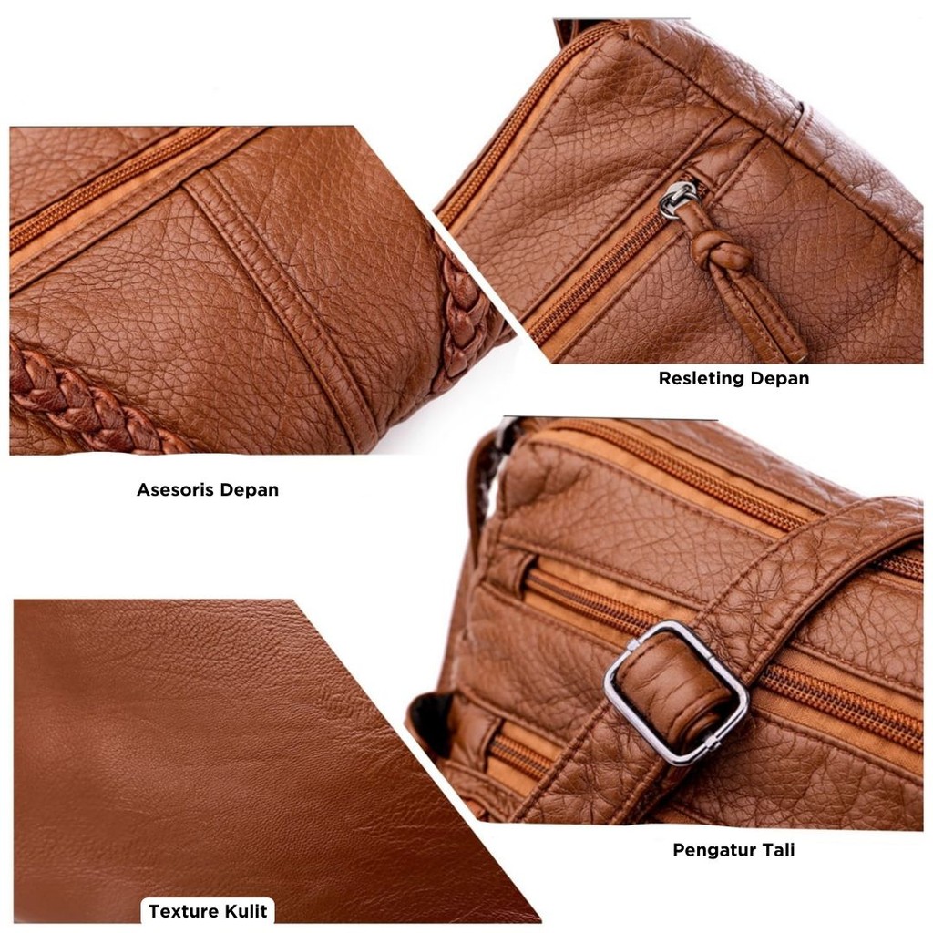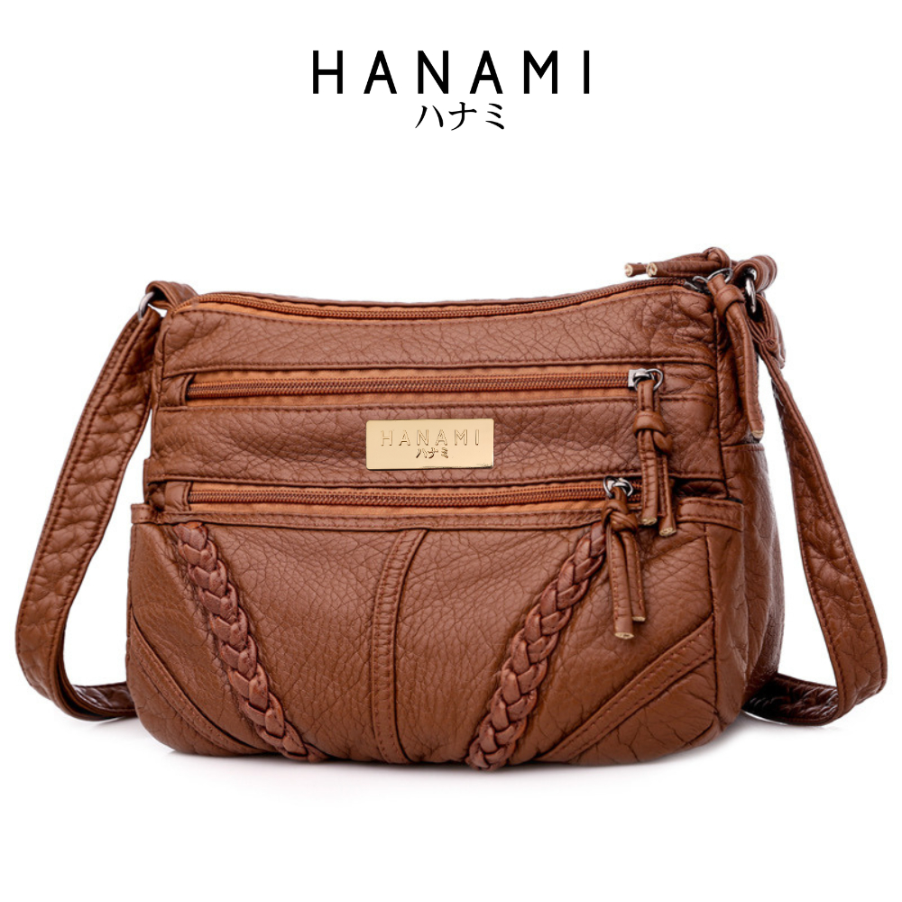HANAMI TAS SELEMPANG WANITA KULIT PREMIUM SHOULDER SLING BAG KOREA CEWEK COKLAT HILLMONT TA383B7