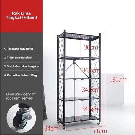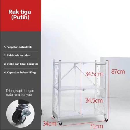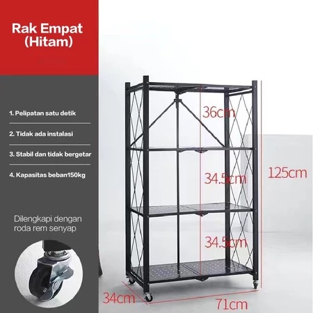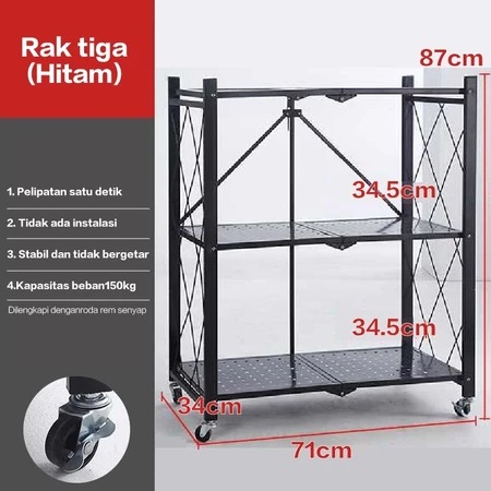 Lemari dapur - Rak Dapur Lipat Rak Lipat Rak Susun Besi Rak Penyimpanan Rak Dapur Multi-Fungsi Metal Storage