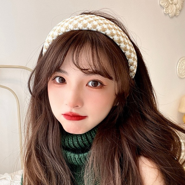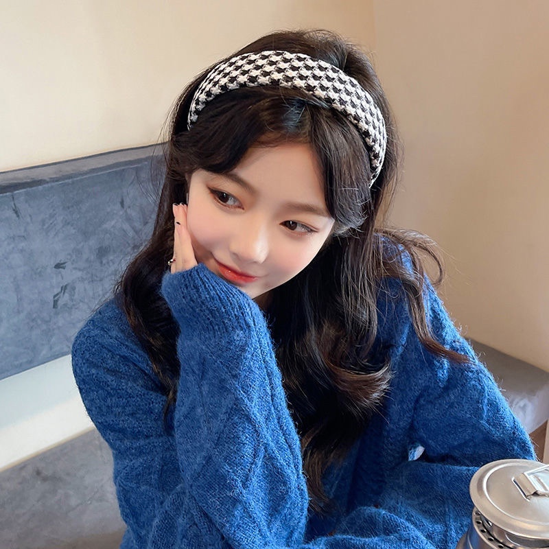 Bando Motif Ban Motif Kotak-kotak Wanita Korean Style / Bando lebar Retro Vintage Korea Headband